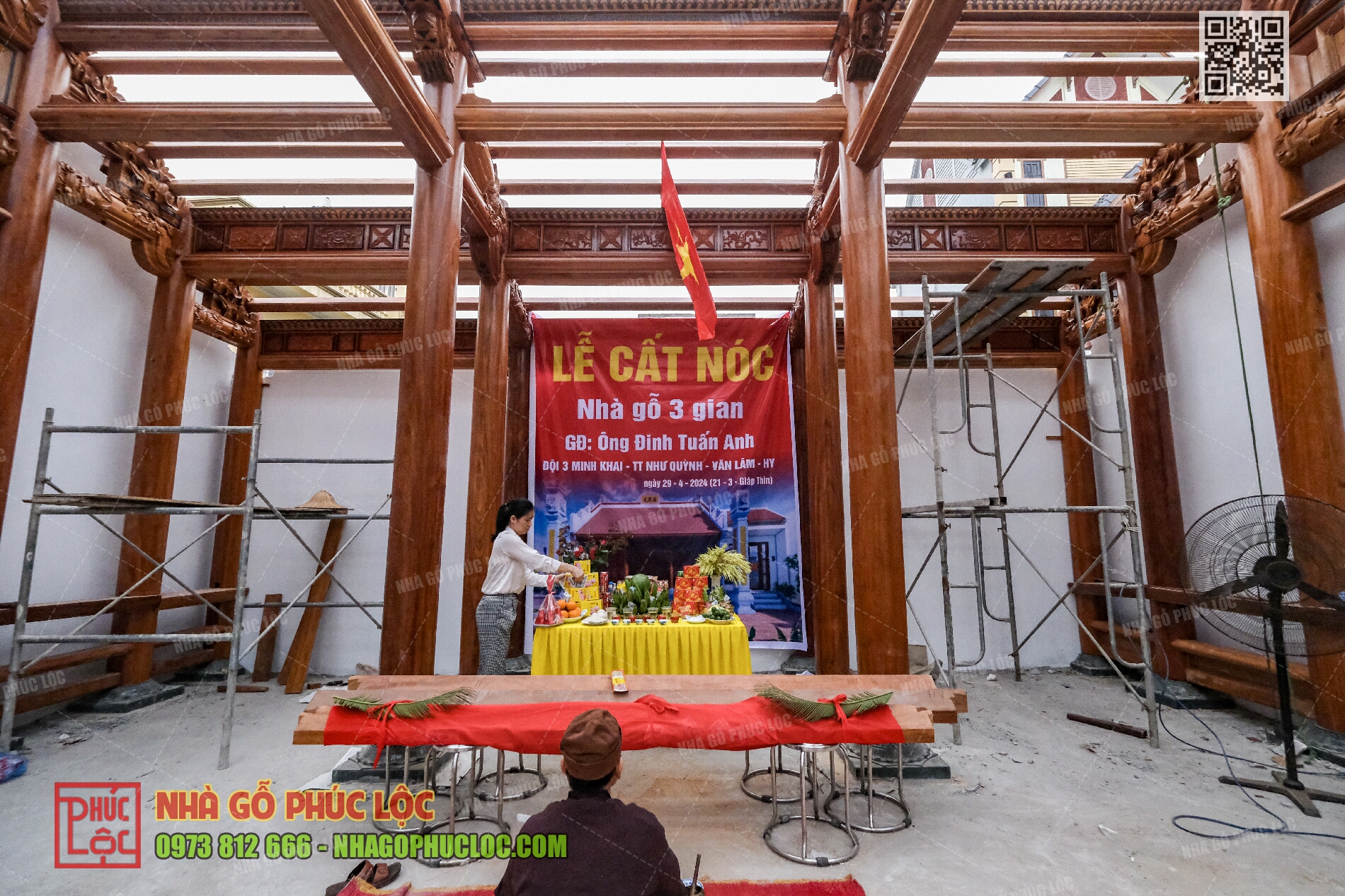Trong quá trình xây dựng nhà gỗ, có nhiều nghi lễ quan trọng cần thực hiện như: lễ phạt mộc, lễ khởi công, lễ cất nóc và lễ nhập trạch vào nhà mới. Đây là những nghi lễ mang ý nghĩa mong cầu sự may mắn, thuận lợi và suôn sẻ trong quá trình xây dựng và hoàn thiện nhà. Do đó, để đảm bảo yếu tố phong thủy nhà gỗ 5 gian, việc chọn ngày giờ thực hiện nghi lễ, lễ vật cúng bái cần thực hiện cẩn thận.